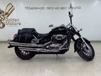 Классический круизер с V-образным двухцилиндровым двигателем 805 см³, развивающим 50 л.с. при 6400 об/мин и 66 Нм крутящего момента при 4000 об/мин. Карданный привод и 5-ступенчатая КПП обеспечивают плавность хода, надежность и характерный для японских круизеров комфорт. Элегантный дизайн с низкой посадкой и хромированными акцентами.